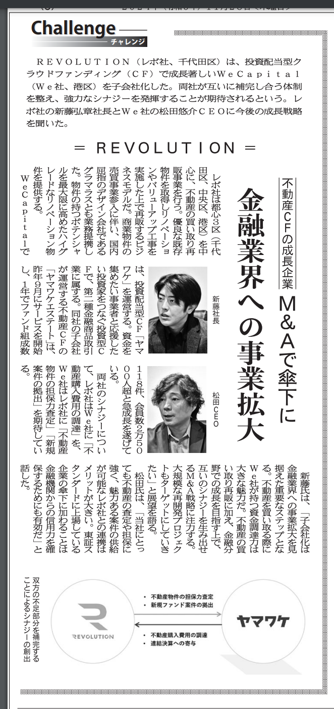 ENこの度、当社代表・新藤とWeCapital社代表・松田氏が、建築業界の最新ニュースを提供する専門紙「建通新聞」の取材を受け、インタビュー内容が掲載されましたのでお知らせいたします。